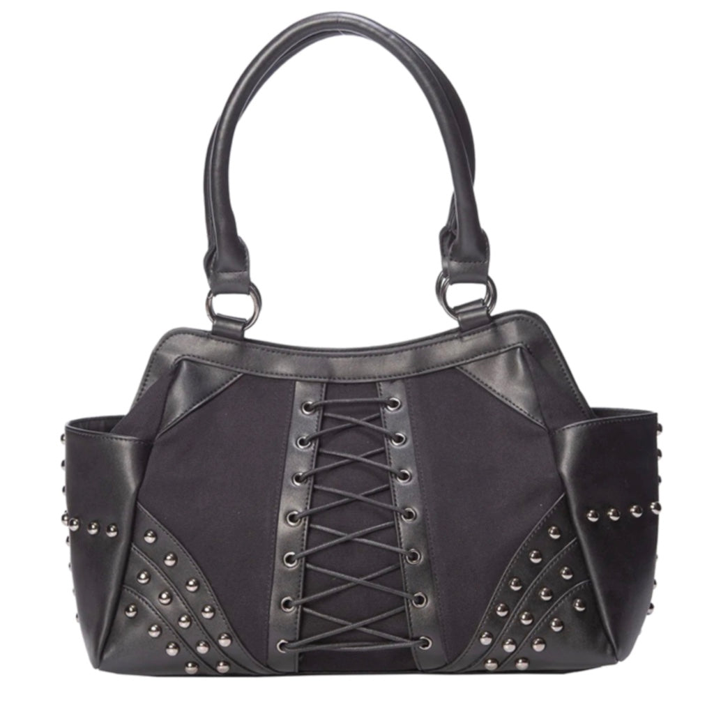 Gothic metal studwork adorsn the corners and side pockets, while large dual handles are big enough to carry with either your hands or on your shoulder.