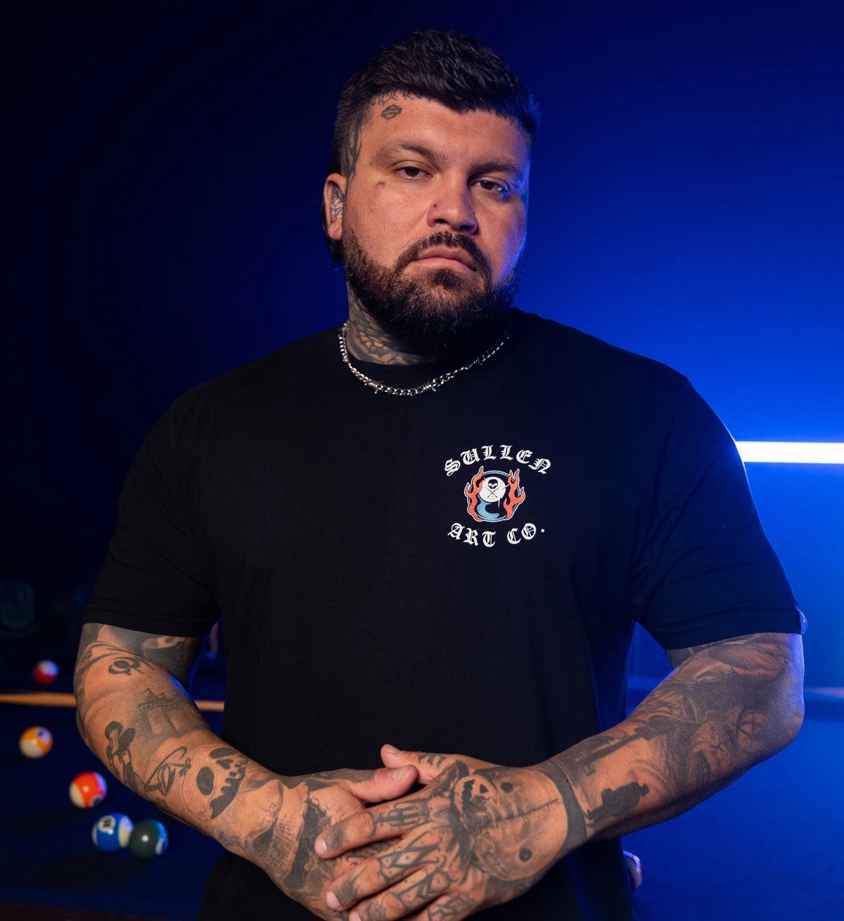 Rack Em Up plays both sides of the table. Our tattooed pool hall hostess leans over the felt with a full rack of balls front and center. “Less Talk, More Chalk” running down the frame—pretty clear what she’s here for. Printed on our jet black Premium Tee as part of the Bar Games capsule, it’s the one you throw on when you’re chasing stripes, solids, and a little extra attention.