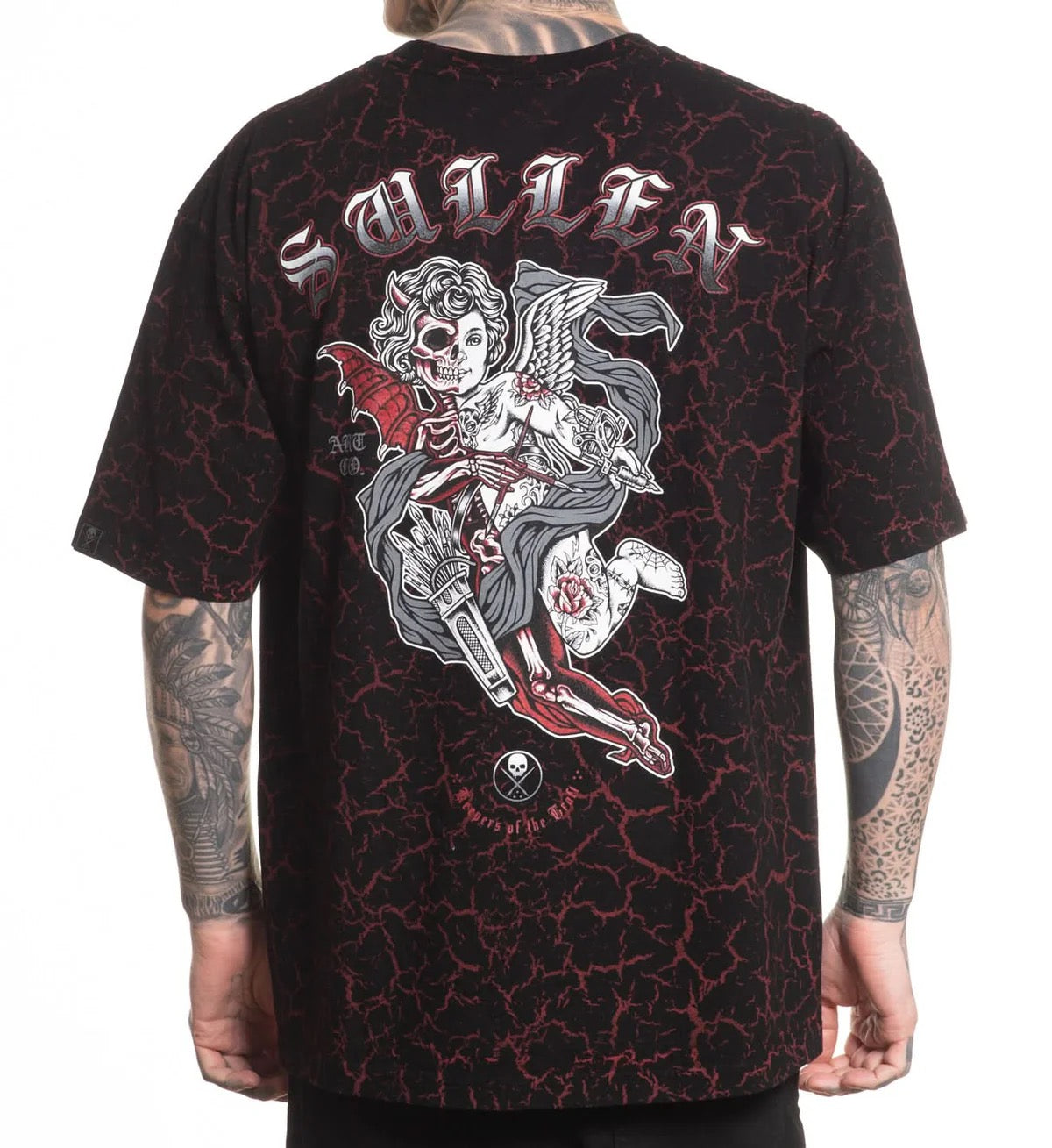 VS Evil brings a split cherub front and center, set against an all-over red root print. Printed on our oversized heavyweight 1 Ton tee, this one’s thick, structured, and built to sit boxy. Consider sizing down.